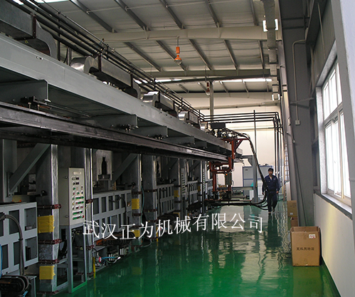 直線式八工位冰箱箱體發泡生產線,按無氟發泡設計,由1套雙向分配小車,8套發泡夾具,1套充注機械手、模具加熱系統及1套電控系統組成,線體包括上箱、輸送、夾緊、充注、固化、取件等工序組成,具有自動化程度高,勞動強度低等特點。